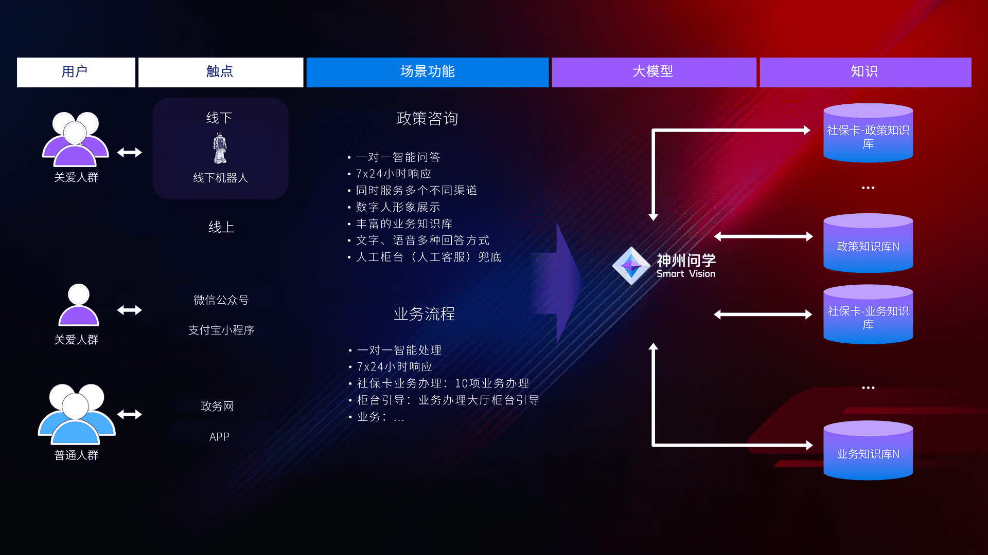 • 利用大语言模型+RAG技术,,,支持多轮对话,,,可识别多种同义词、、、近义词,,精准理解关爱人群语义快速输出结果。。