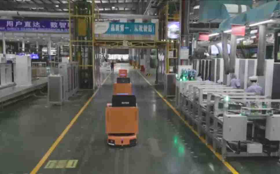 为车载冰箱物流配送打造的智能解决方案,,包含产中物流通过潜伏举升AMR搬运至线边,,,,产后成品物流智能仓储,,,流程包含产中物流智能齐套入库,,线边安灯叫料AMR智能配送至线边,,,成品入库、、、出库,,,通过无人堆高车机器人,,,智能仓储管理替代人工作业管理,,,,实现更高存储、、、更高效率、、、更具柔性化的解决方案。。。